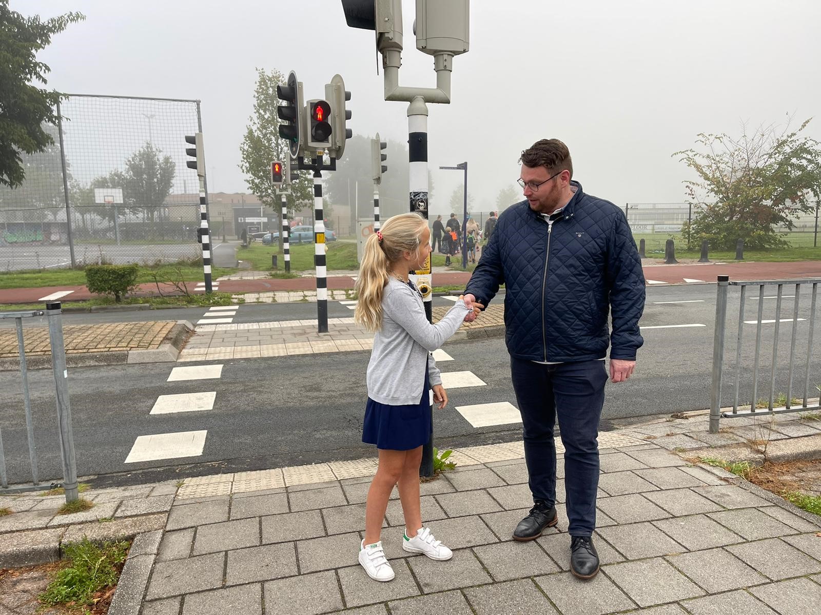En goed nieuws: Samen met de gemeente (wethouder Mark Eijbaard) is het gelukt om dit te regelen! Sinds dit weekend staan de verkeerslichten dus eerder aan en kan iedereen veilig oversteken!